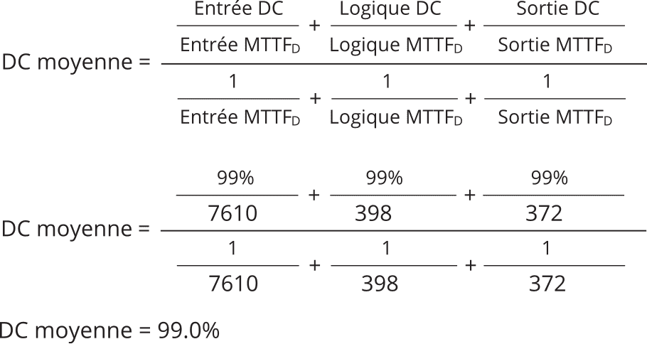 Les données MTTFD calculées précédemment sont utilisées, ainsi que les données DC du Tableau E.1, pour déterminer le DC global du système.
